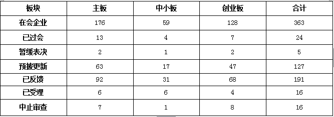 截至2018年3月29日,中国证监会受理首发企业379家(含中止的16家),其中,已过会24家,未过会355家。未过会企业中正常待审企业339家,中止审查企业16家。