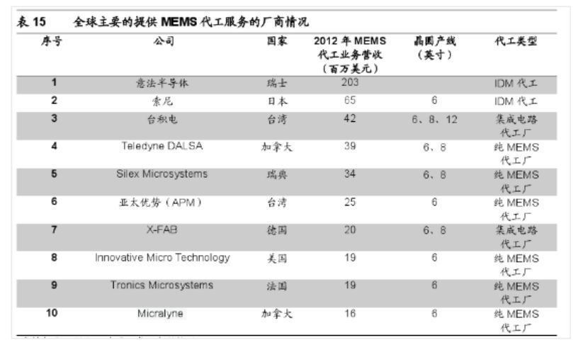 MEMS产业链将来的投资机会重点在14、18寸晶圆、软件、新兴传感器和新型封装与测试。
