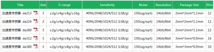 微加速度传感器 | ±0.5% 非线性 | - | 工作温度:-40°C to 125°C |