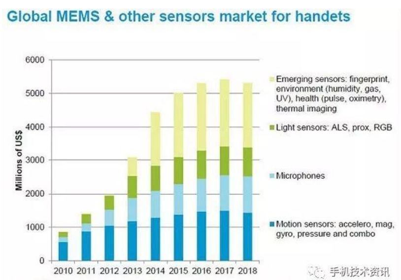 MEMS传感器作为新型的智能化传感器,在国外已经有着较为成熟的技术和工艺,现已广泛应用于汽车工业、消费电子和军工等领域。目前市场主要集中在汽车工业与消费电子领域,随着智能制造和物联网的兴起,MEMS传感器的应用前景广阔。由于人工智能技术的不断成熟与落地,MEMS传感器在下游行业的应用越来越多,目前智能手机采用的MEMS传感器有十几种之多,汽车则高达100多种。