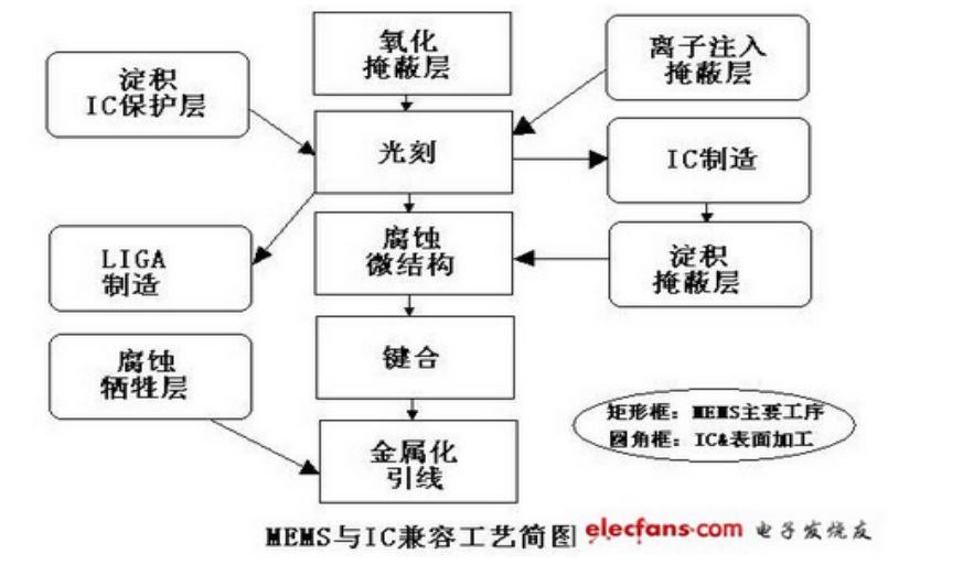 MEMS传感器的生产工艺一般包括了三个部分:硅片制作工艺,基于SOI硅片的MEMS工艺和MEMS与IC兼容工艺。