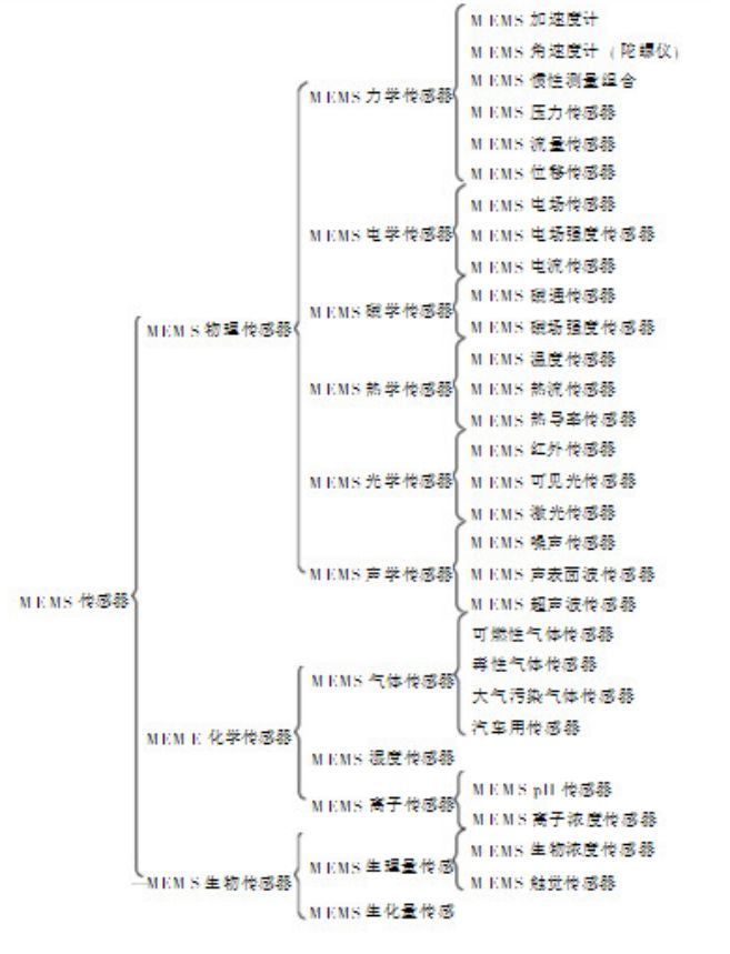 MEMS传感器种类很多,按照不同的分类标准将有不同的门类。