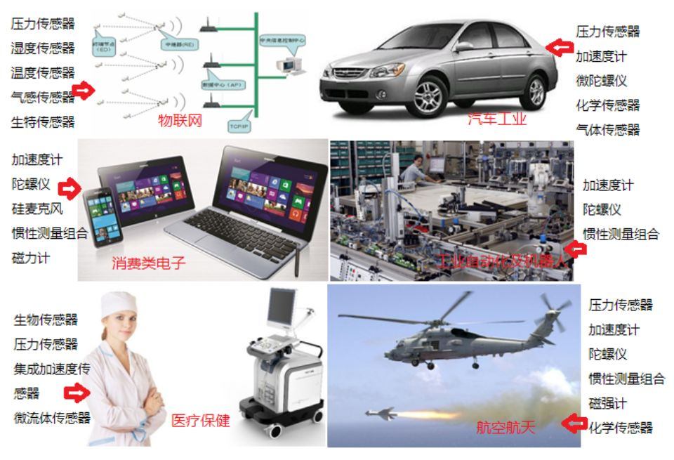 按应用场景 | MEMS汽车电子传感器、医疗电子传感器、家电传感器、手机传感器、运动传感器、工业控制传感器等。 |