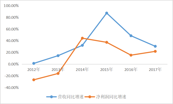 通过下图可知,汉威科技从2014年开始盈利高速增长,这可能与我国政策推动相关。2017年营收增长为30.37%,净利润同比增速为21.73%。