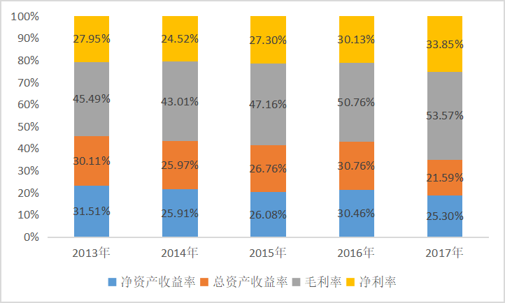如下图所示,过去五年显示出森霸传感优秀的盈利能力,其中毛利率持续大于40%,2017年甚至高达53.57%;净资产收益率也普遍维持在20%以上。这显示出企业产品具有较强的竞争。