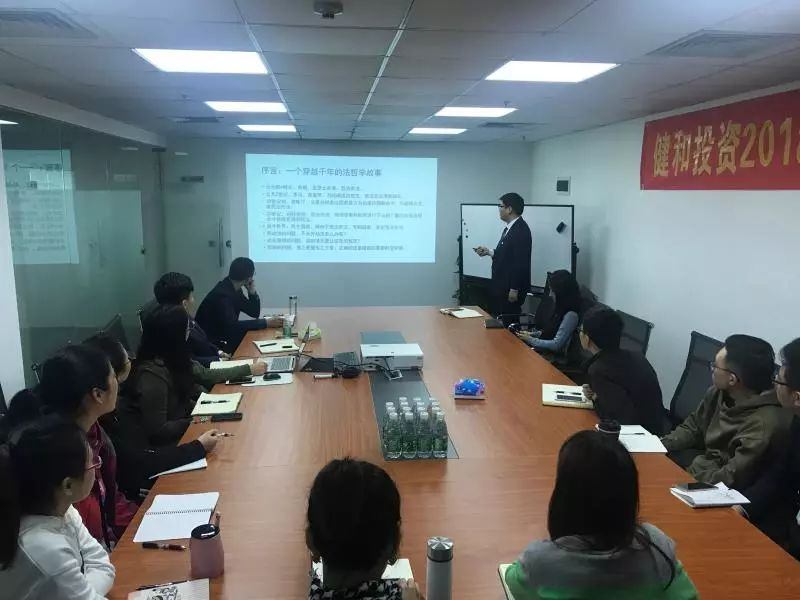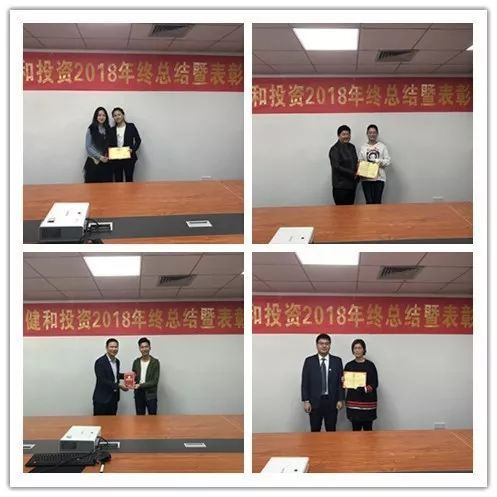 2019年1月22日至1月25日,健和投资2018年终总结暨表彰大会在公司会议室举行。出席本次会议的人员有:健和投资全体在职员工,战略合作伙伴黄泽华、张卫星、唐铭珊。大家围绕着工作总结、意见建议、印象深刻的事件及工作规划等方面进行汇报,对2018年的各项工作进行总结,并列具了2019年的工作计划,会议取得了圆满成功。