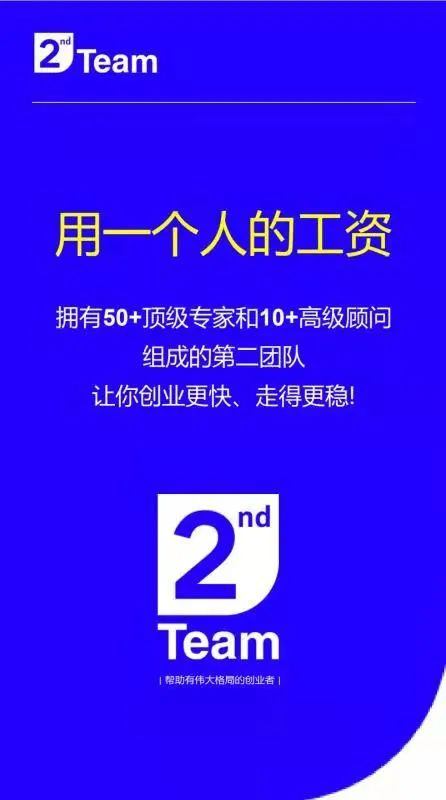 第二团队(2nd team)是一家以科技为驱动核心,信奉长周期经验与能力的咨询公司。由原瀚特有限公司创始人孙鹏先生联合50多位资深专家及顾问打造,主要帮助创业者提供KP人才获取,合伙人团队补位,头部基金的融资对接,战略和组织咨询等企业级服务。公司以厦门为基地,辐射珠三角、长三角乃至全国,目前已经成功服务了一批独角兽级项目。经实践,第二团队定位精准,服务到位,已然成为企业规范服务和增值服务的生力军。