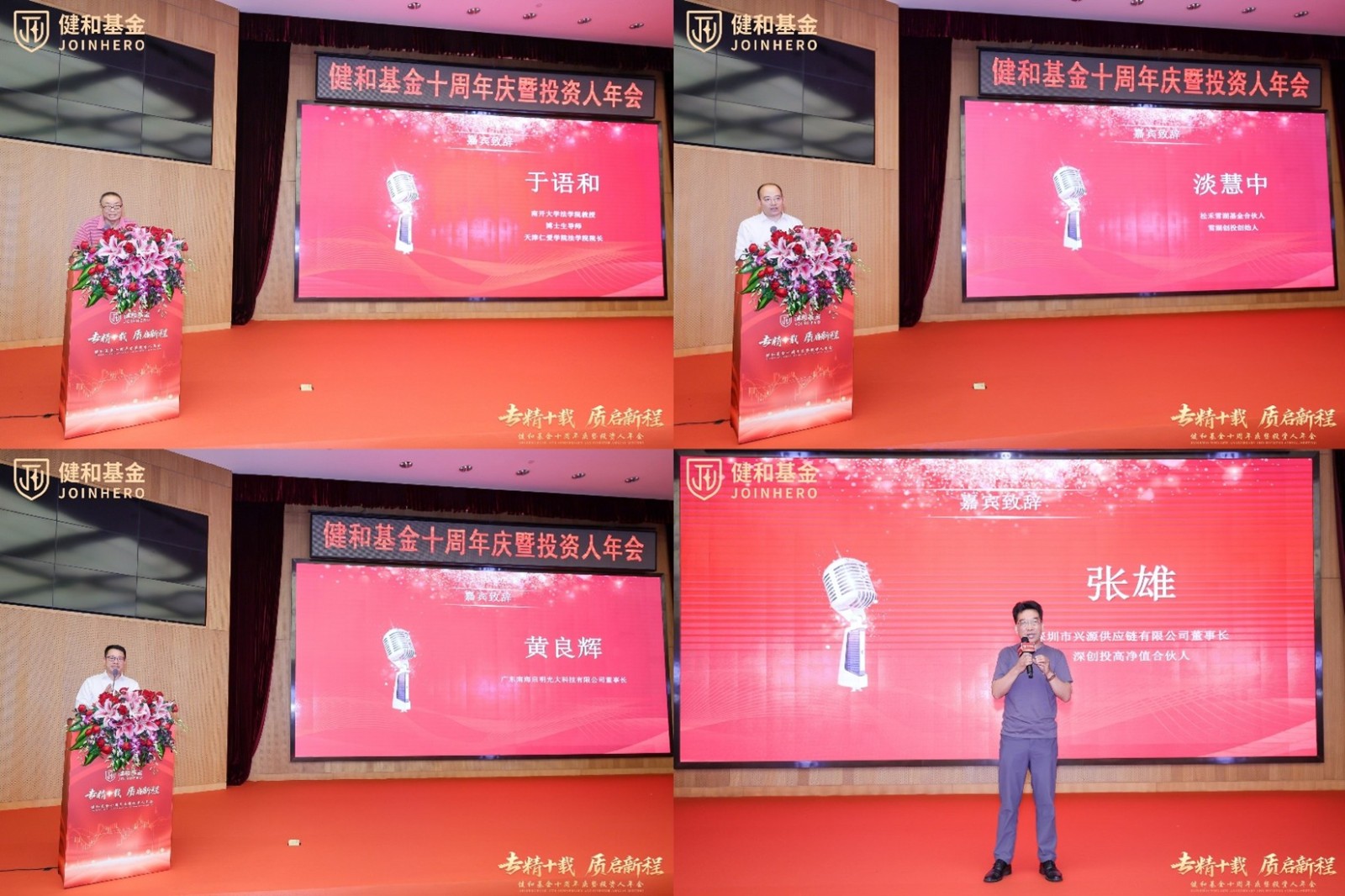 在对风控体系的深入剖析之后,会议转向了合作共赢的探讨。南开大学法学院教授、博士生导师、天津仁爱学院法学院院长于语和教授,松禾雪湖基金合伙人、雪湖创投创始人淡慧中先生,广东南海启明光大科技有限公司董事长黄良辉先生,资深投资人张雄先生以亲历视角,讲述与健和基金“十年长情”的合作故事,勾勒出资本与产业共生共荣的生态图景。